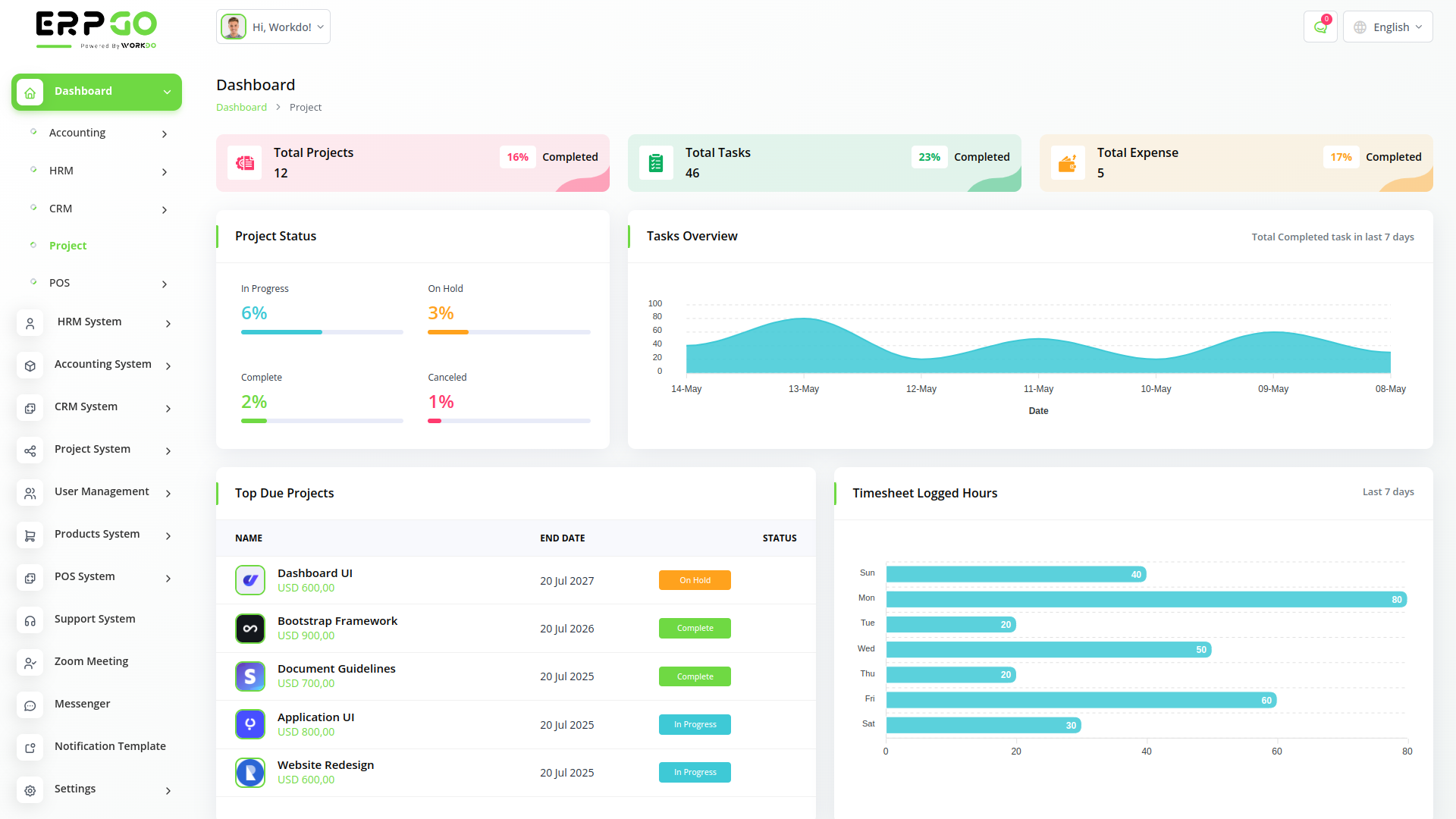 ERPGo SaaS All In One Business ERP With Project, Account, HRM, CRM & POS